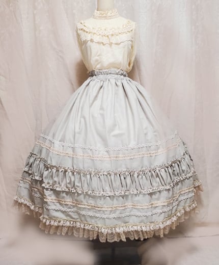 【受注生産商品】『an[TEA]que』マキシ丈スカート(グレイ)