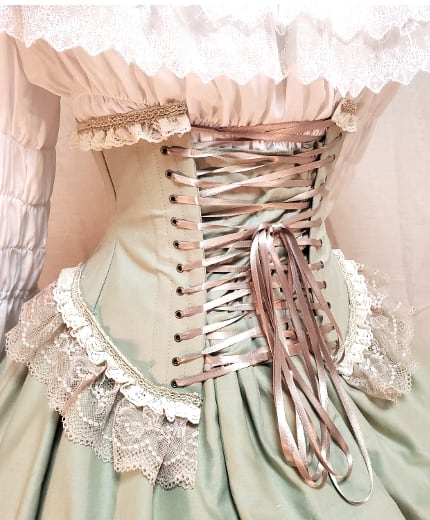 ・背面後ろ当て布あり(幅26cm・収納可)、編み上げリボン7m