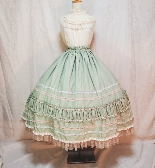 【受注生産商品】『an[TEA]que』マキシ丈スカート(グリーン)