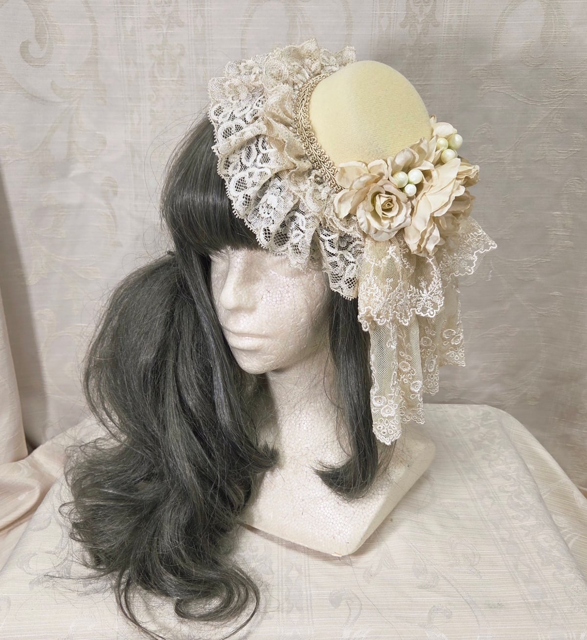 こちらのミニハットも含みます、当店製の頭飾品は全て"1点物"になります。