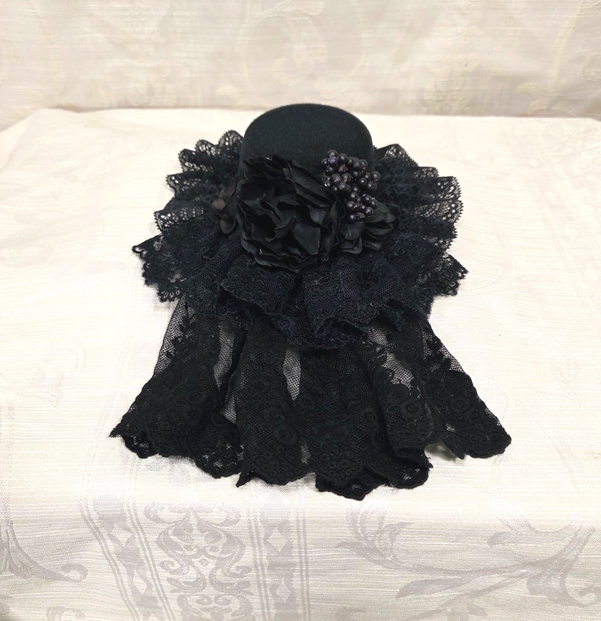 こちらのミニハットも含みます、当店製の頭飾品は全て"1点物"になります。